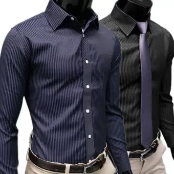 Fashion Men S Luxury Formal Style Strip Long Sleeve Lapel Business