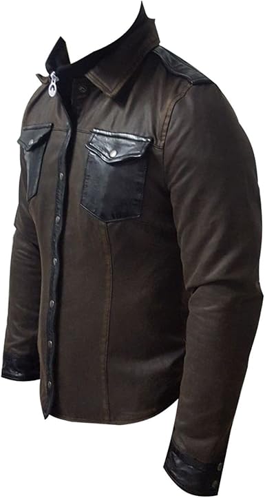 Mtw Mens Washed Slim Fit Shirt Jacket Fashion Leather Smart Casual