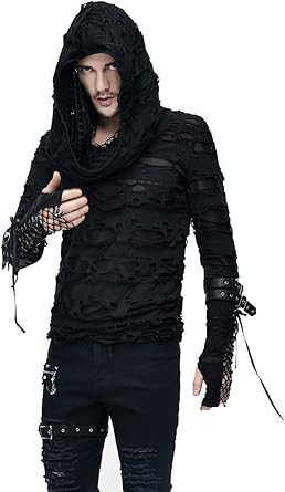 Devil Fashion Steampunk Men Ripped T Shirt Gothic See Through