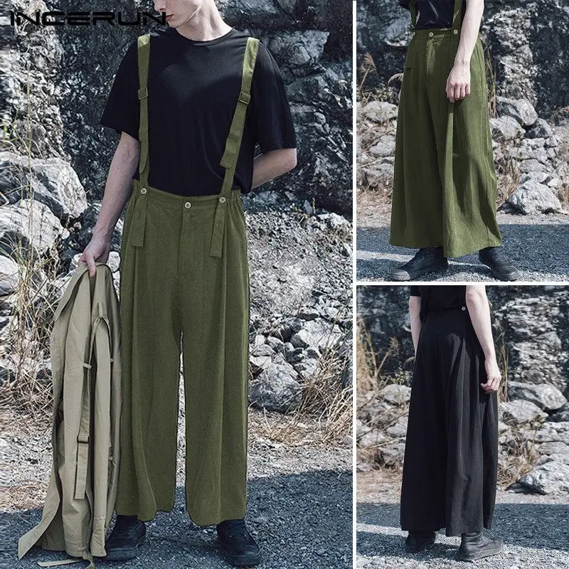 Mens Jumpsuit Fashion Men Wide Legs Long Pants Man Overalls Loose
