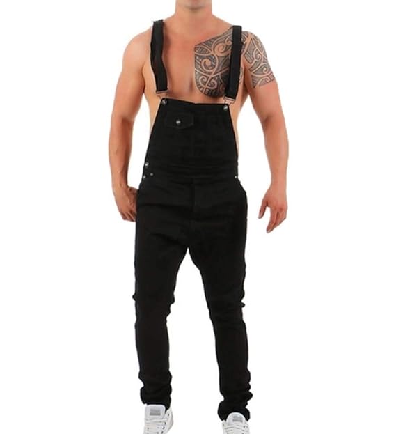 Mens Casual Black Bib Jumpsuit For Men Fashion Slim Hip Overalls