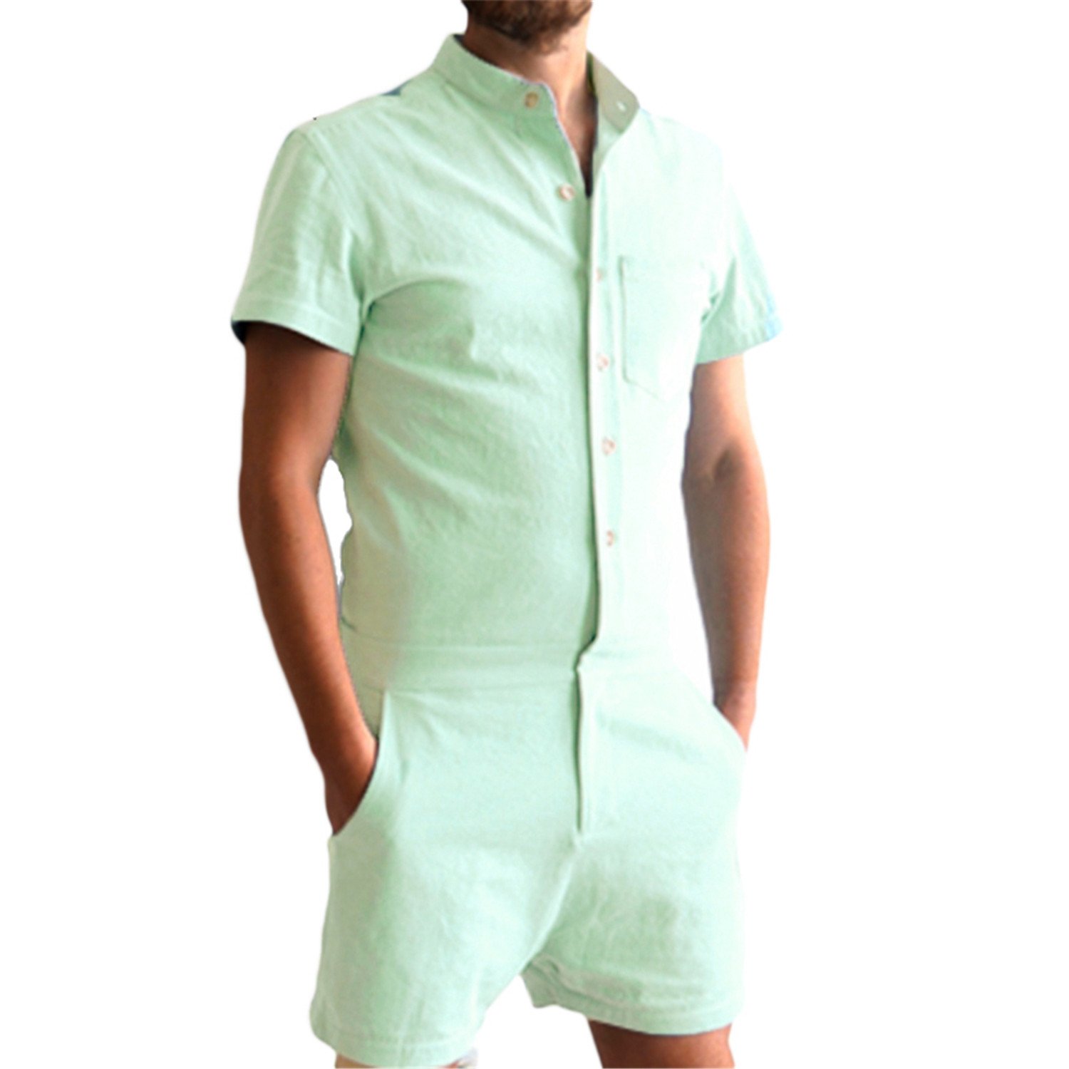 Summer Men S Button Overalls Jumpsuits Short Sleeve Pants Rompers