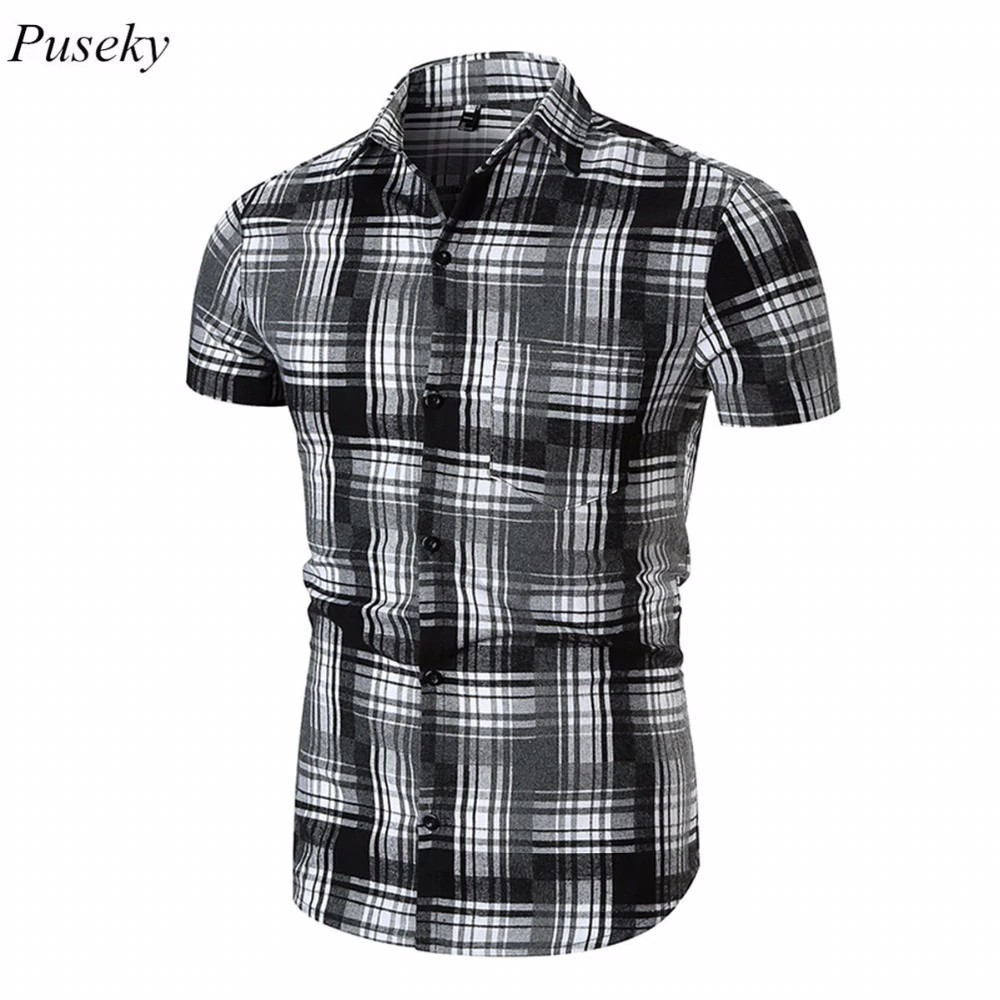 Black White Plaid Shirt Men Shirts 2018 New Summer Fashion Homme