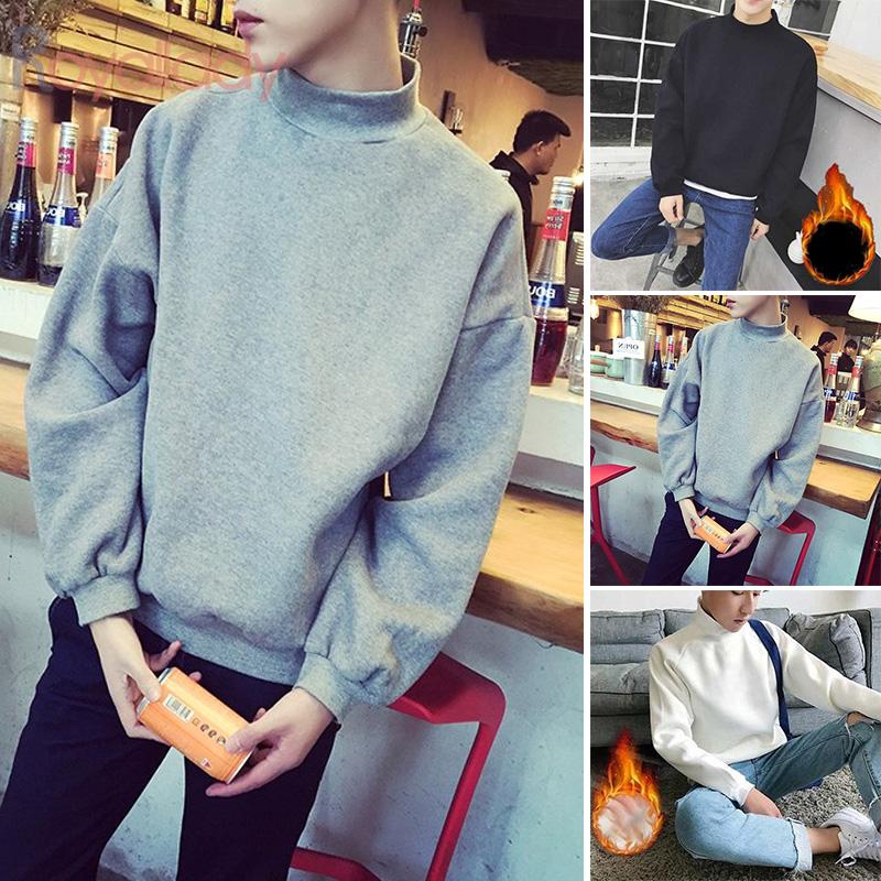 2019 New Streetwear Men S Winter Warm Cotton High Neck Pullover
