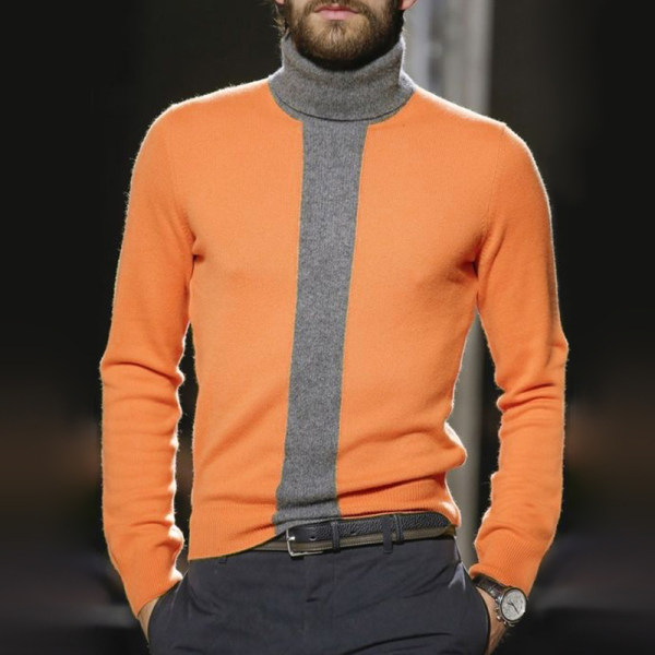Men S Cotton Casual Color Matching Turtleneck Sweater
