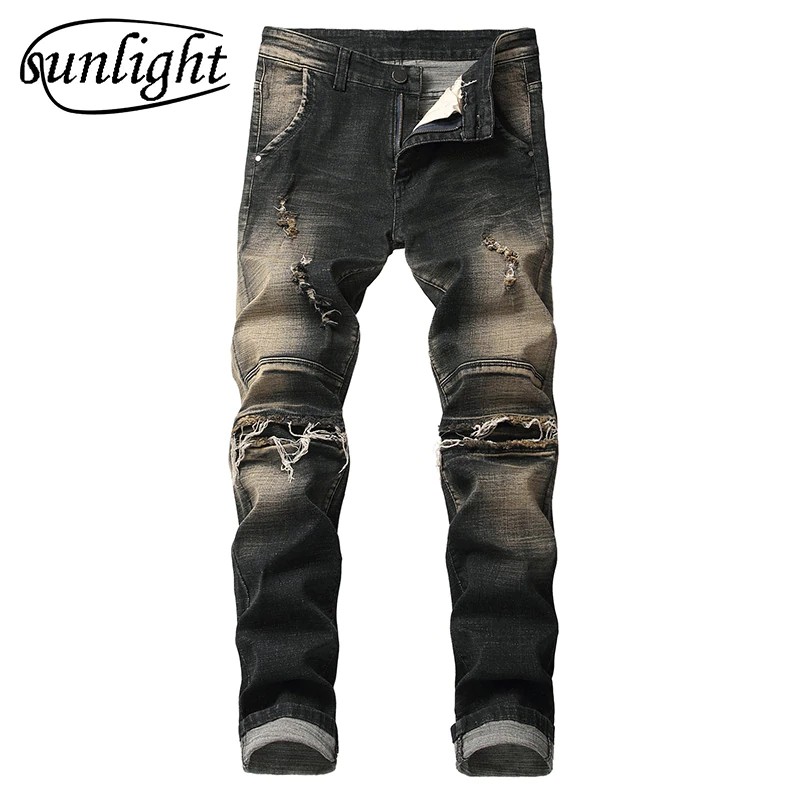 High Quality Ripped Jeans Men Fashion Patchwork Moto Jeans 2018