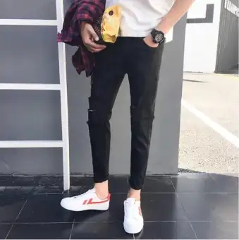 2018 Men S Fashion Spring Hole Long Pencil Pants Ripped Jeans Slim