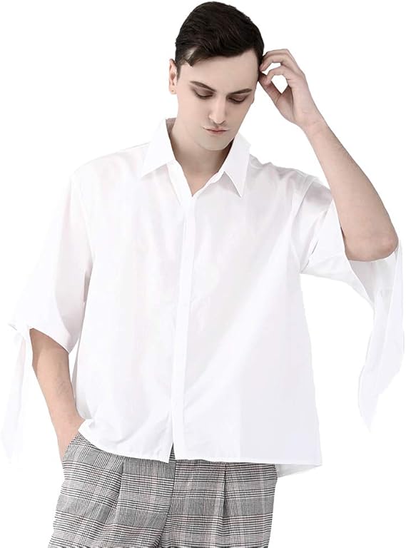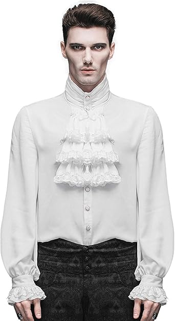 Steelsir Gothic Men Shirts Victorian Ruffled Cosplay Casual White