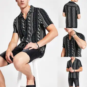 Bm Frss Shipping Men S Summer Fashion Casual Lapel Print Short