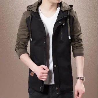 Mens Jacket Casual Hoodies Jacket Men Patchwork Slim Fashion